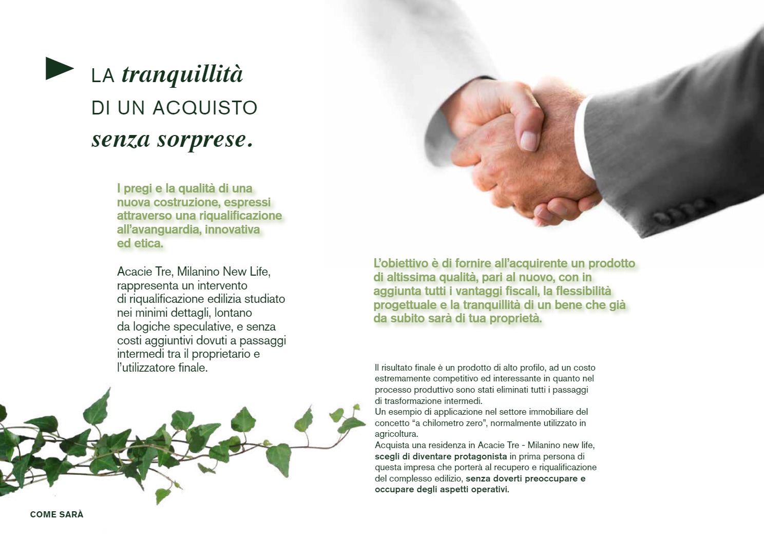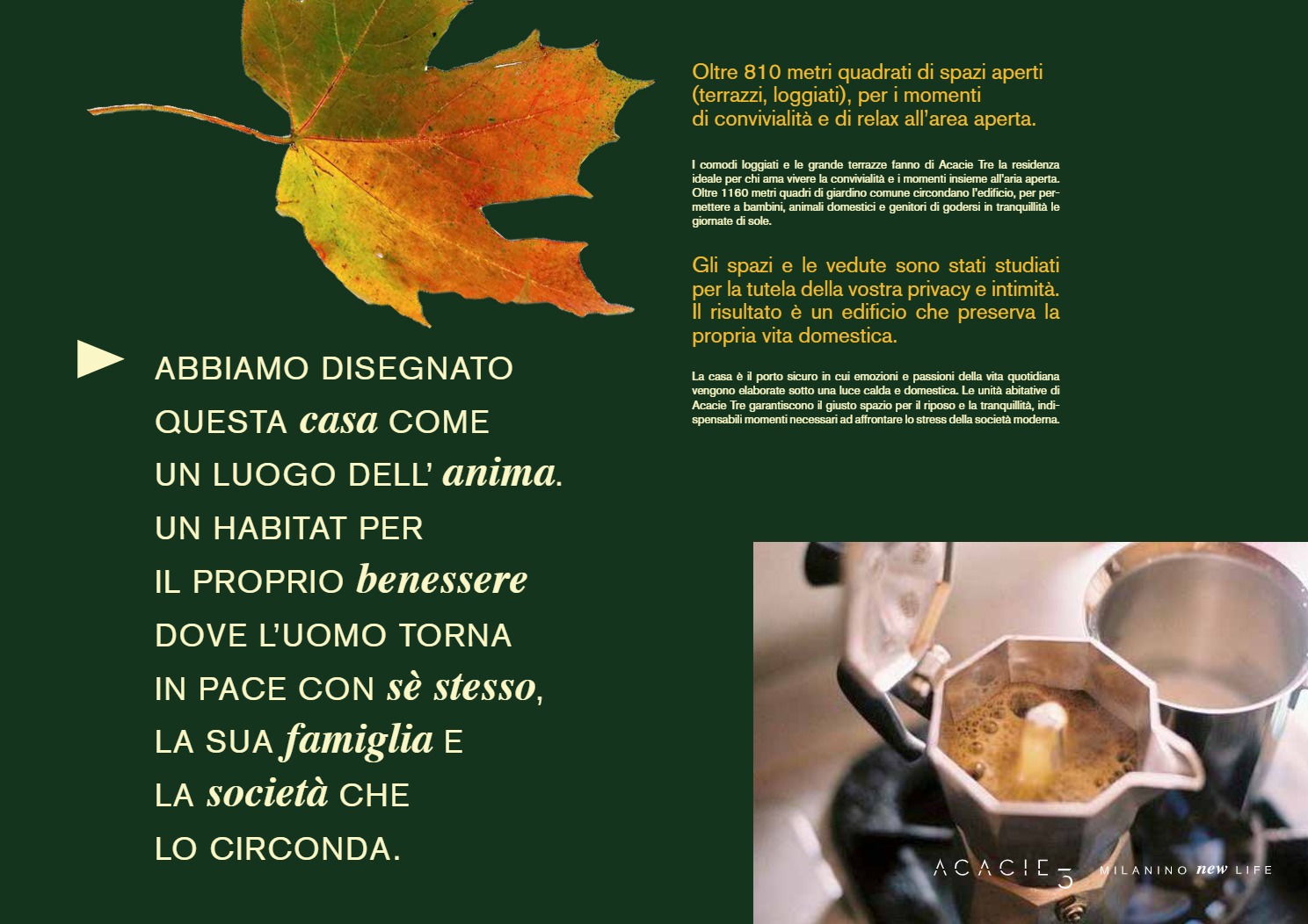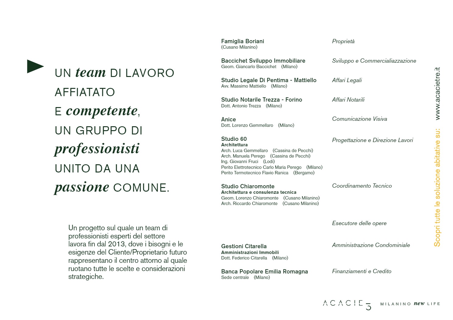 Sono questi i princìpi alla base di ACACIE 3, Milanino New Life, un esempio concreto di sviluppo immobiliare che ha restituito alla comunità di Cusano Milanino un prodotto di valore e qualità, in posizione unica e privilegiata, direttamente dal proprietario all’utilizzatore finale. Un progetto che abbiamo pensato, partendo dallo studio del brand e della comunicazione, sviluppato e commercializzato.