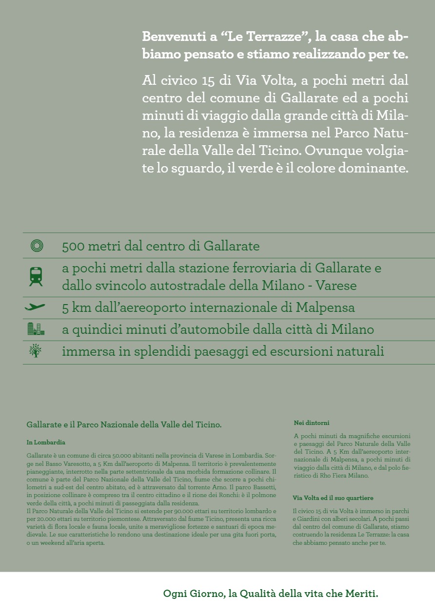 A Gallarate, in un contesto immerso nel verde e a 500 metri dal centro, abbiamo gestito la costruzione e la vendita delle unità immobiliari del complesso residenziale denominato “Residenza Le Terrazze”.